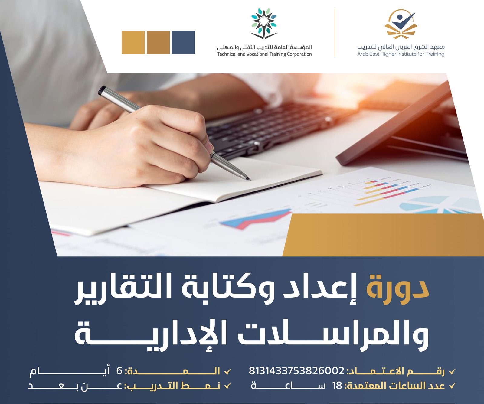 اونلاين/حضوري AM/PMتُعد كتابة التقارير الإدارية مهارة حيوية في أي منظمة، حيث تساهم في نقل المعلومات والبيانات بطريقة