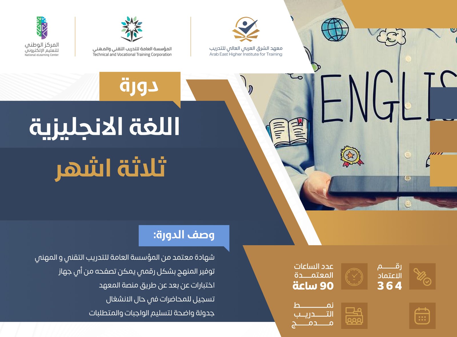 اونلاين/حضوري AM/PMتم تصميم برنامج اللغة الانجليزية لمدة ثلاثة أشهر لتلبية احتياجات الأفراد العاملين الذين يرغبون في