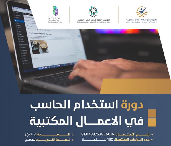 اونلاين/حضوري AM/PMتهدف هذه الدورة التأهيلية إلى دعم المتدرب بالمعلومات واكتساب المهارات المتخصصة في استخدام الحاسب