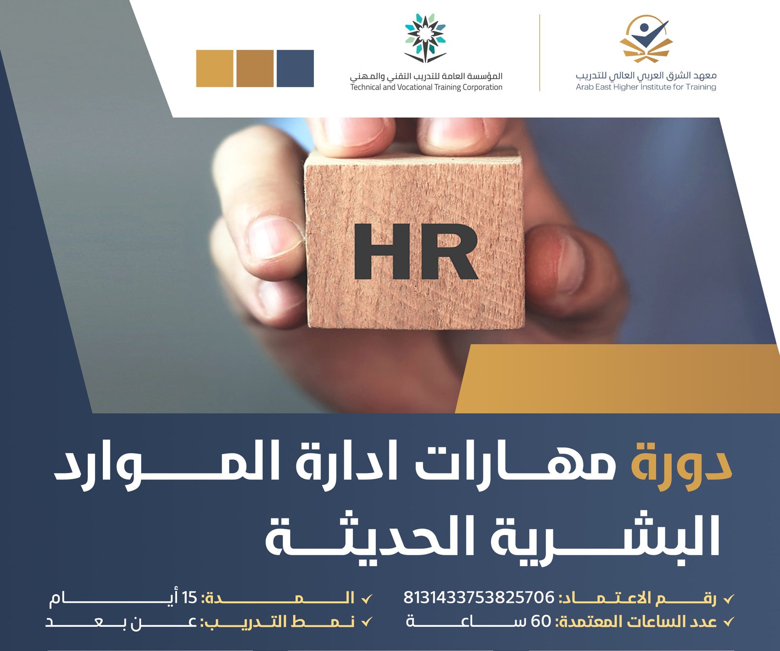 اونلاين/حضوري AM/PMإكساب المتدرب المعارف والمهارات التي تمكنه من العمل في مجال الموارد البشرية والإلمام المعرفي لوظ