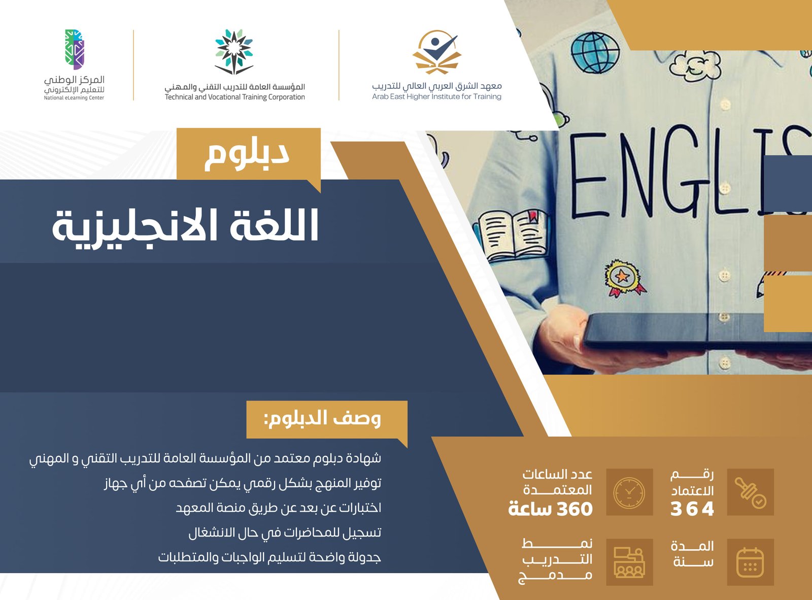 اونلاين/حضوري AM/PMتم تصميم برنامج دبلوم اللغة الانجليزية العامة لتلبية احتياجات الأفراد العاملين الذين يرغبون في مو